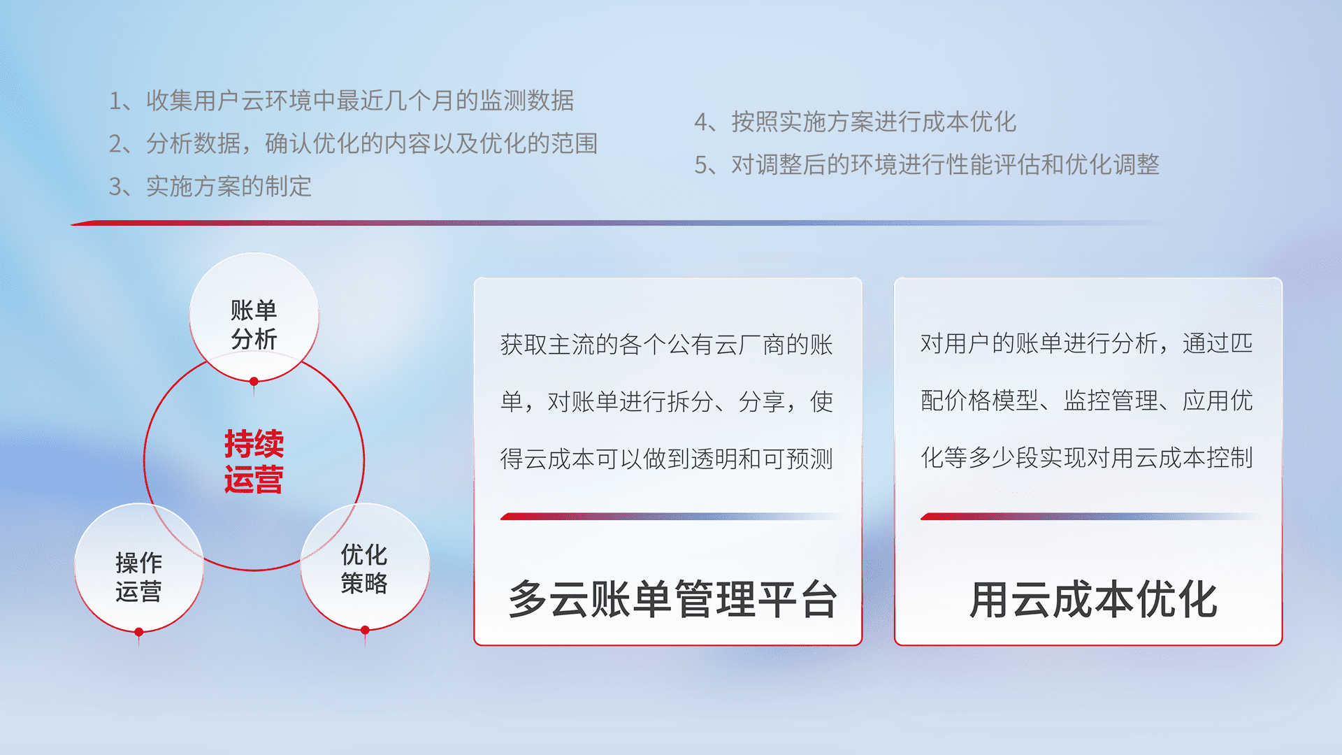 运用智能化工具分析云资源,,,提供日常费用可视化工具,,自动账单拆分,,,成本优化云上费用,,,降本增效。。